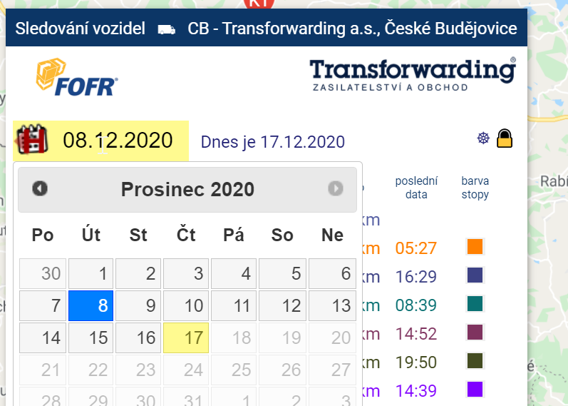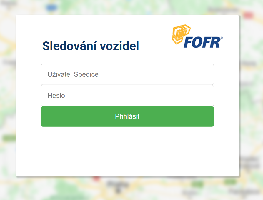 Mapy FOFR vozidel otevřete z menu programu Spedice, nebo zadáním adresy v prohlížeči https://mapy.netspedice.cz/