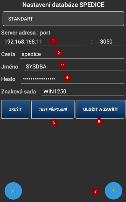 - Lokální IP adresa serveru s Firebird databází Spedice