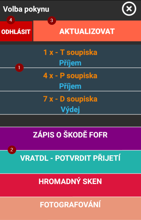 - Zobrazené soupisky je možné ručně zaktualizovat (v případě že byly aktuálně přidány nové ve Spedici)