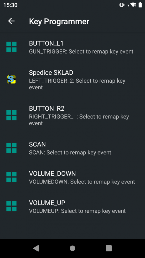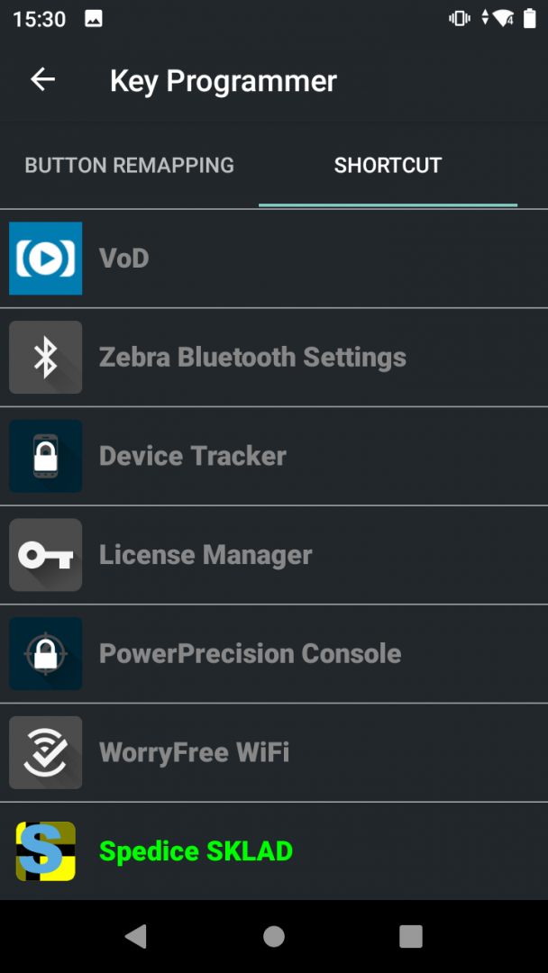 Příme spuštění aplikace Spedice Sklad bočním tlačítkem