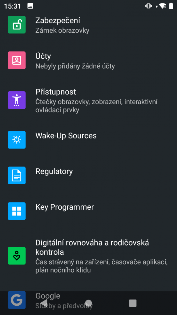 Nastavení Android – Wake-Up Sources – vybrat všechna tlačítka