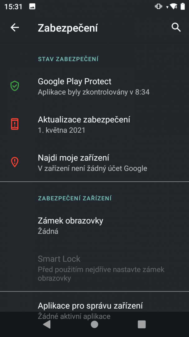 Nastavení Android – Zabezpečení – Zámek obrazovky – místo přejetí prstem – vybrát žádný.