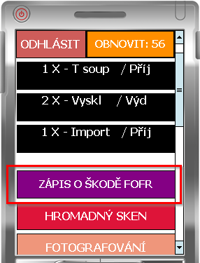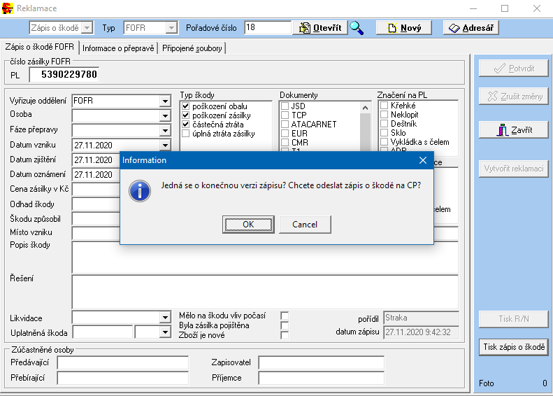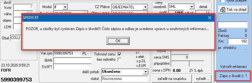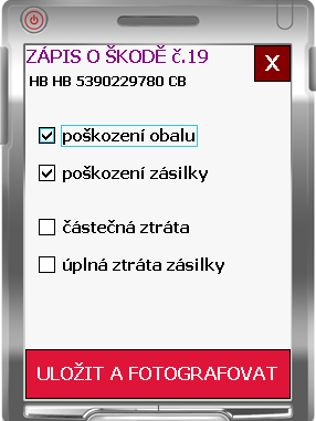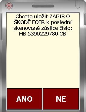 Pokud předcházel sken zásilky v rámci nějaké soupisky, následuje dotaz uložení zápisu o škodě k této zásilce, nebo skenovat novou zásilku