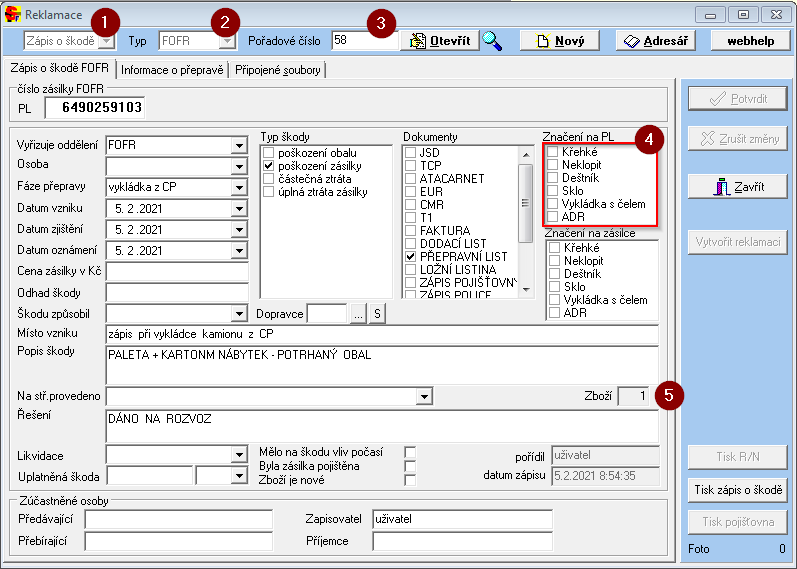 4) – značení na PL – při pořízení „Zápisu o škodě“ z PL nebo přes PDA se automaticky zapisuje z PL