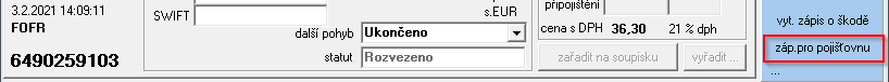 Používá se především v případech, kdy k požadovanému PL již existuje jiný „Zápisu o škodě“.  Z PL jdou pouze otevírat již pořízené „zápisy“.