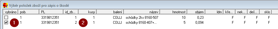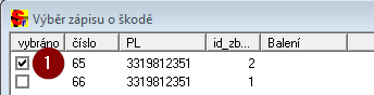 V případě, že je na PL více jak jeden druh zboží, objeví se seznam zásilek pro výběr požadovaného zboží.